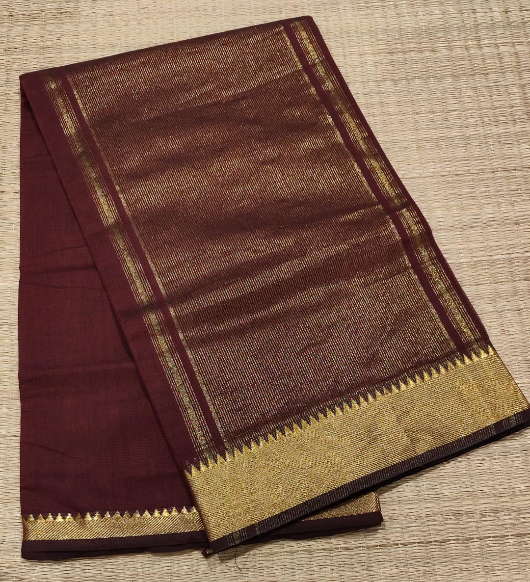 NOTE : “Pure handloom Mangalagiri saree in Dark Mehron Color, woven with traditional charm and everyday comfort. Elegant, easy to drape, and made to celebrate the beauty of Indian craftsmanship.”