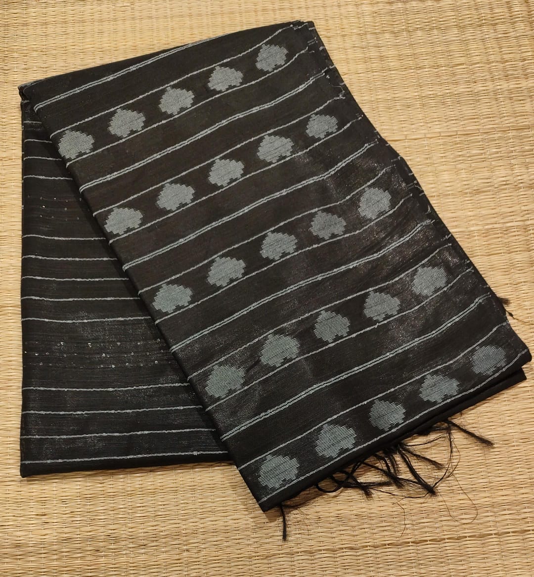 NOTE : “Pure handloom Bagalpuri Chanderi saree in Black Color, woven with traditional charm and everyday comfort. Elegant, easy to drape, and made to celebrate the beauty of Indian craftsmanship.”