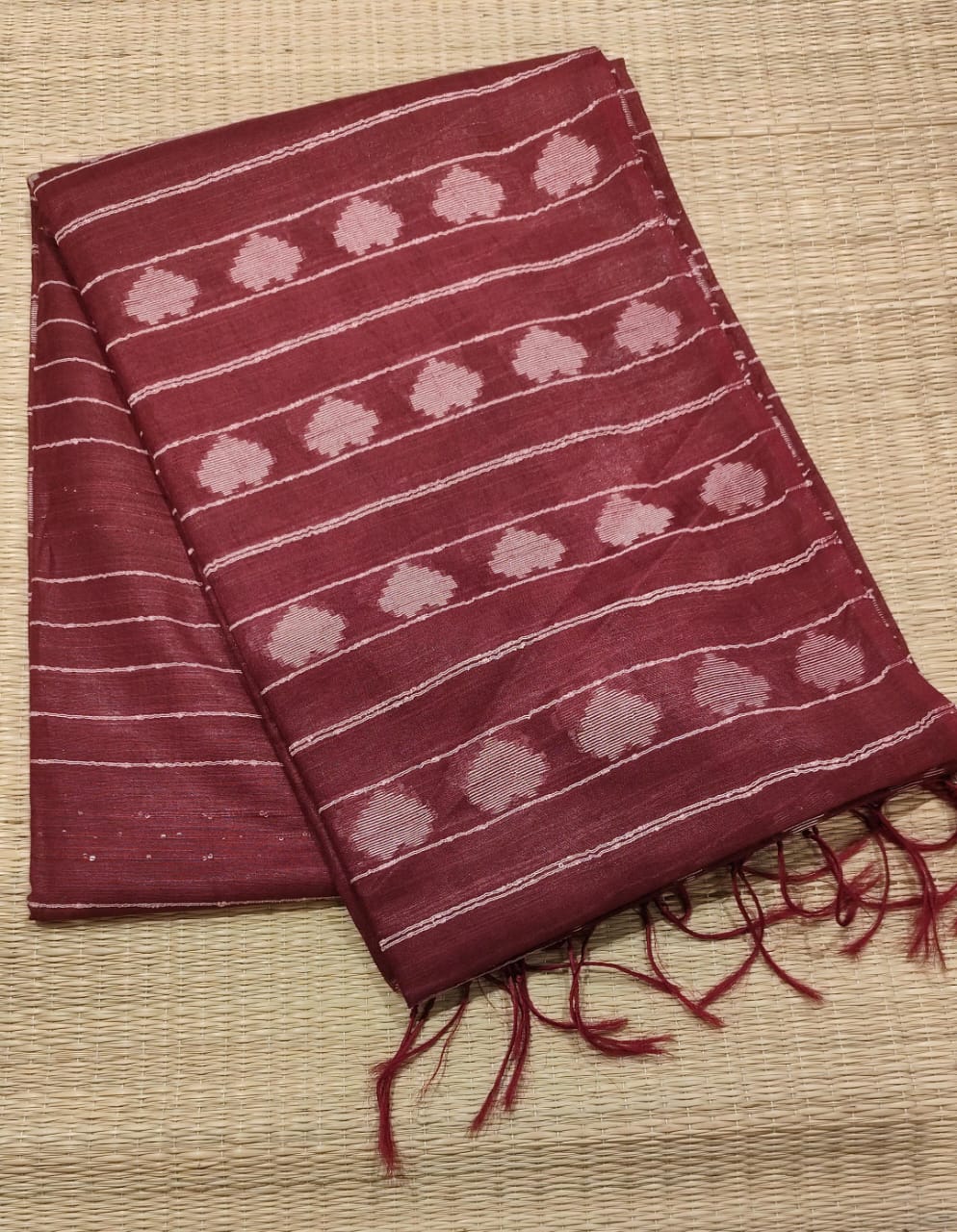 NOTE : “Pure handloom Bagalpuri Chandri saree in Mehrun Color, woven with traditional charm and everyday comfort. Elegant, easy to drape, and made to celebrate the beauty of Indian craftsmanship.”