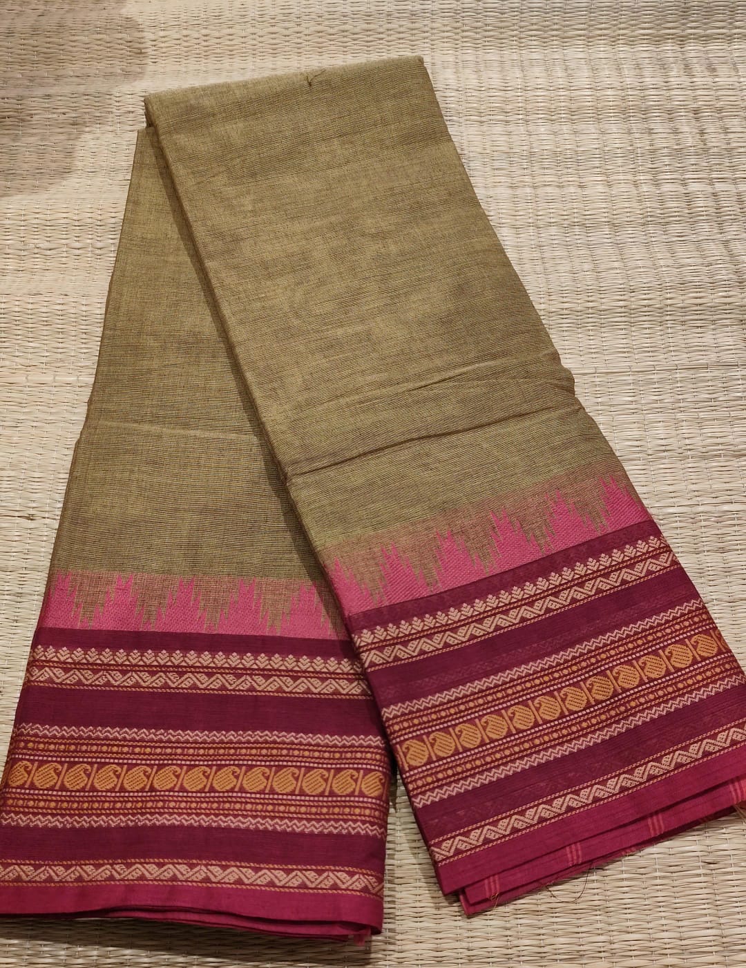 NOTE : Pure handloom [Fabric Name] saree in [Color], woven with traditional charm and everyday comfort. Elegant, easy to drape, and made to celebrate the beauty of Indian craftsmanship.