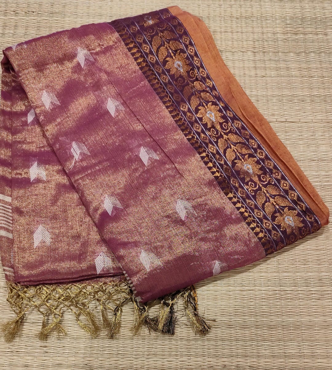 NOTE : “Pure handloom Tissue Linen saree in Pink Color, woven with traditional charm and everyday comfort. Elegant, easy to drape, and made to celebrate the beauty of Indian craftsmanship.”