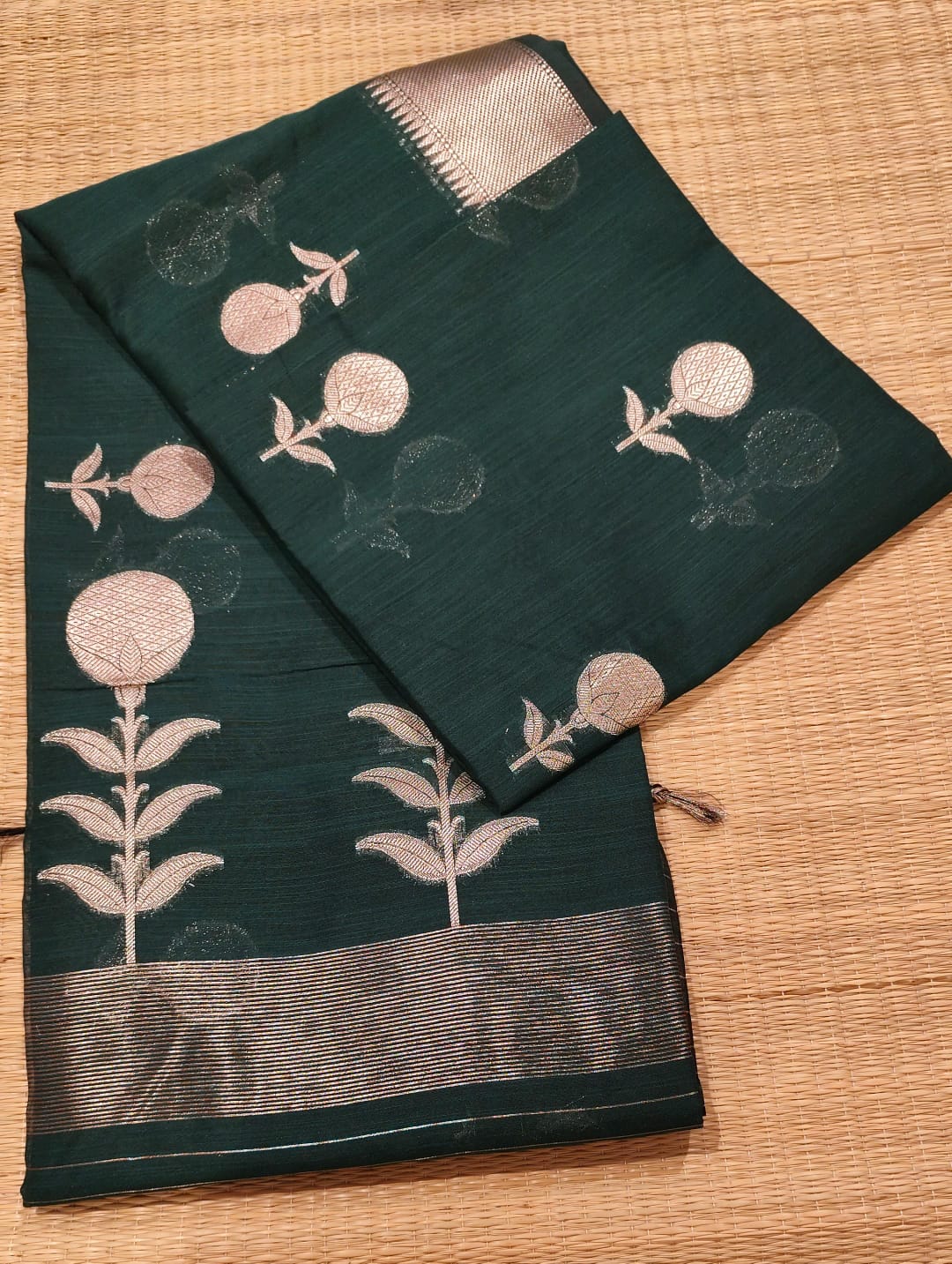 NOTE : “Pure handloom Chanderi saree in Dark Green Color, woven with traditional charm and everyday comfort. Elegant, easy to drape, and made to celebrate the beauty of Indian craftsmanship.”