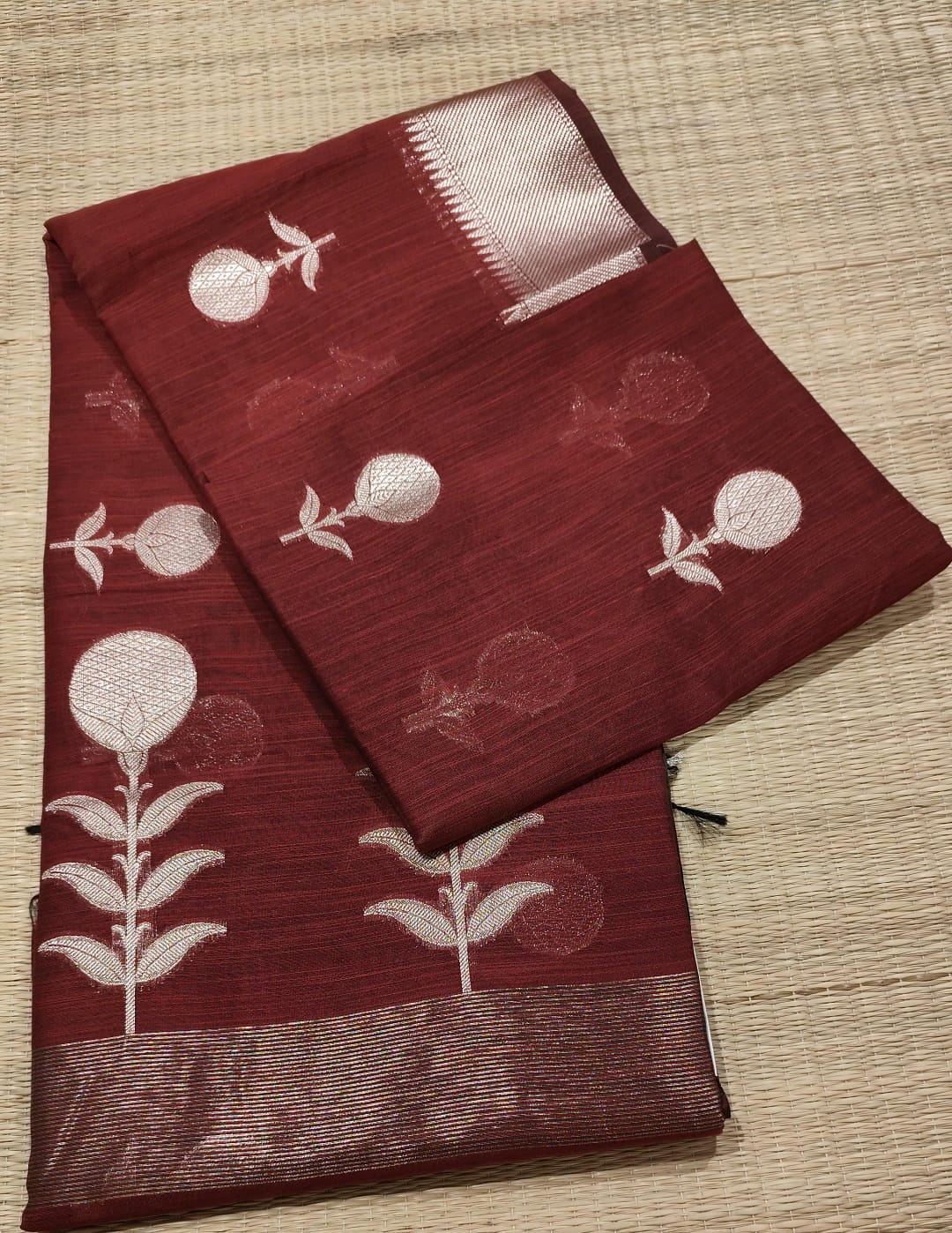 NOTE : “Pure handloom Chanderi saree in Mehrun Color, woven with traditional charm and everyday comfort. Elegant, easy to drape, and made to celebrate the beauty of Indian craftsmanship.”