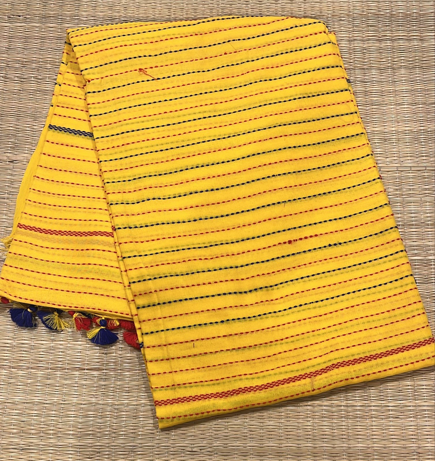 NOTE : Pure handloom Cotton Kantha Stitch saree in Yellow Color, woven with traditional charm and everyday comfort. Elegant, easy to drape, and made to celebrate the beauty of Indian craftsmanship.