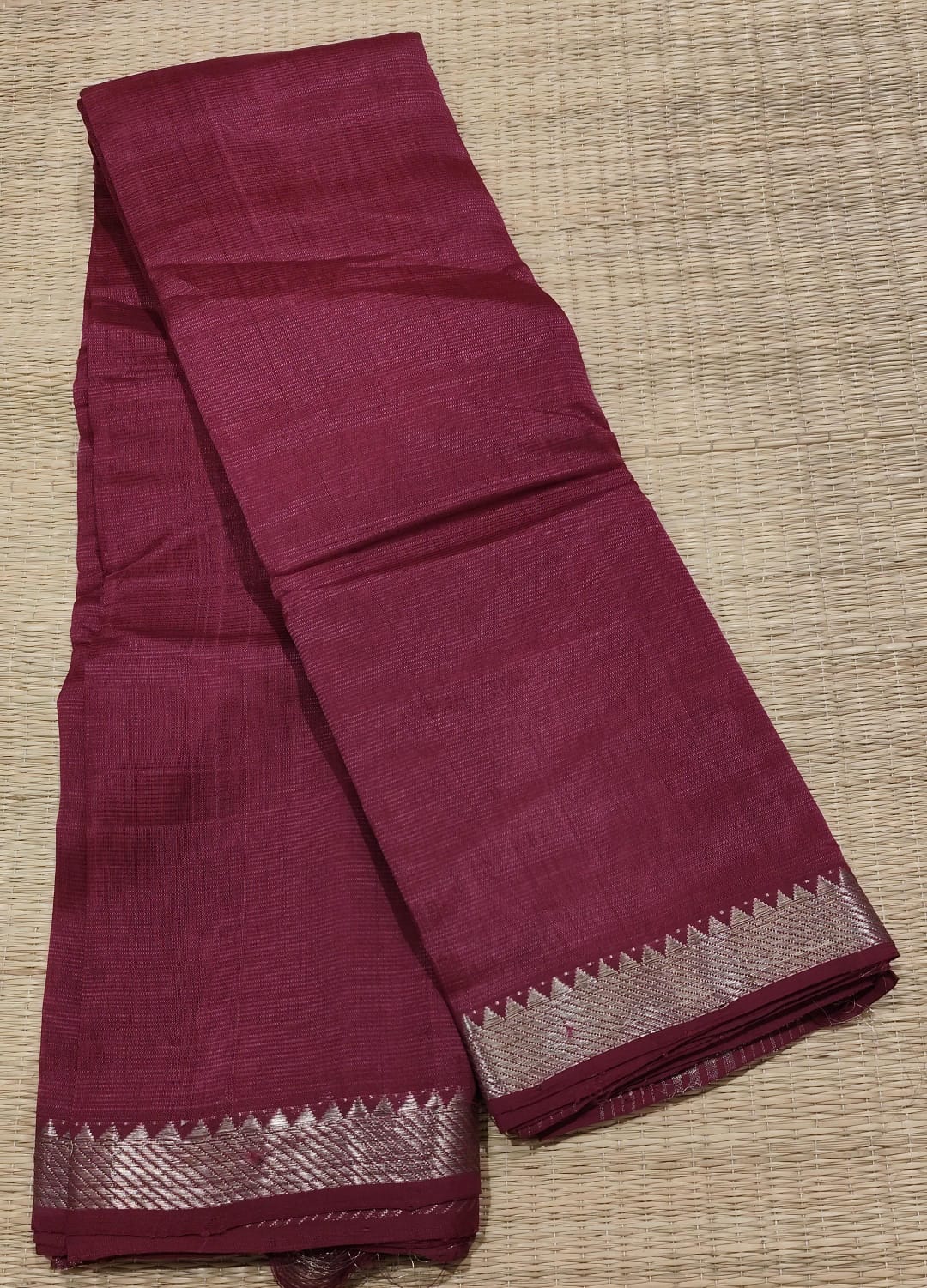 NOTE : Pure handloom [Mangalagiri Silk with Silver Borda saree in Mehrun Color, woven with traditional charm and everyday comfort. Elegant, easy to drape, and made to celebrate the beauty of Indian craftsmanship.